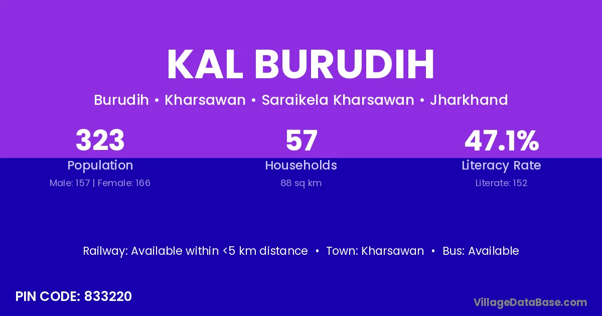 Kharsawan is the nearest town to Kal Burudih village for major economic activities