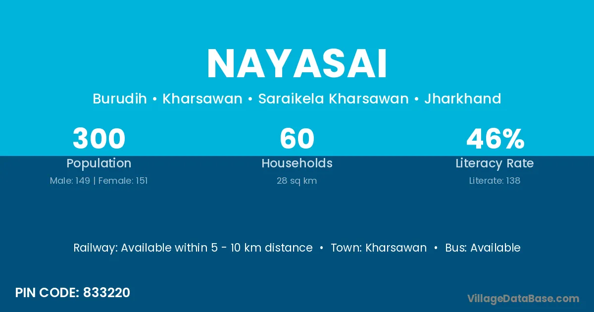 Kharsawan is the nearest town to Nayasai village for major economic activities