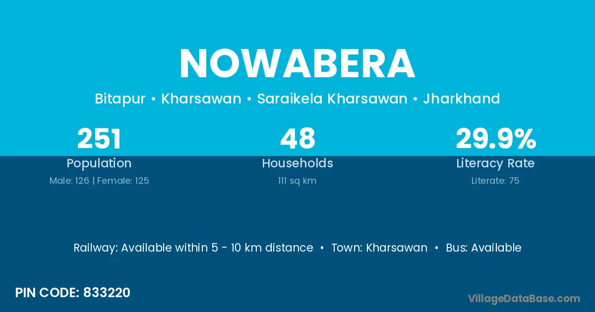 Kharsawan is the nearest town to Nowabera village for major economic activities