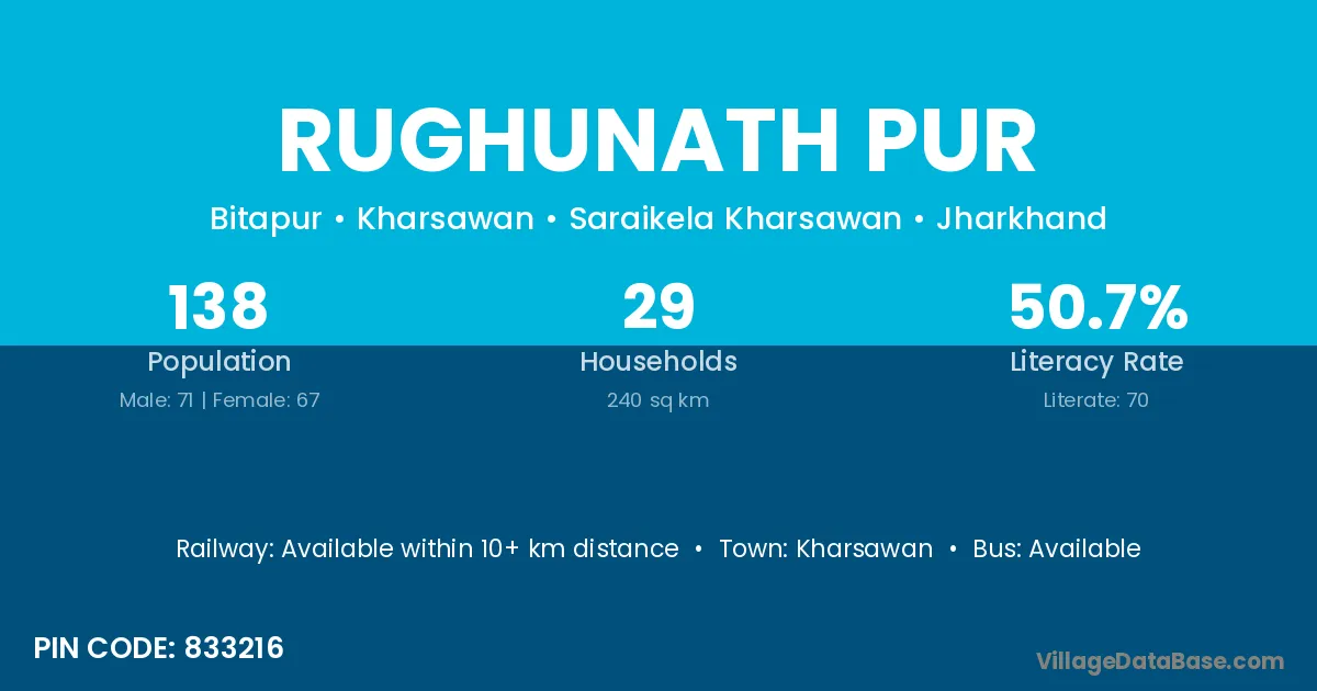 Kharsawan is the nearest town to Rughunath Pur village for major economic activities
