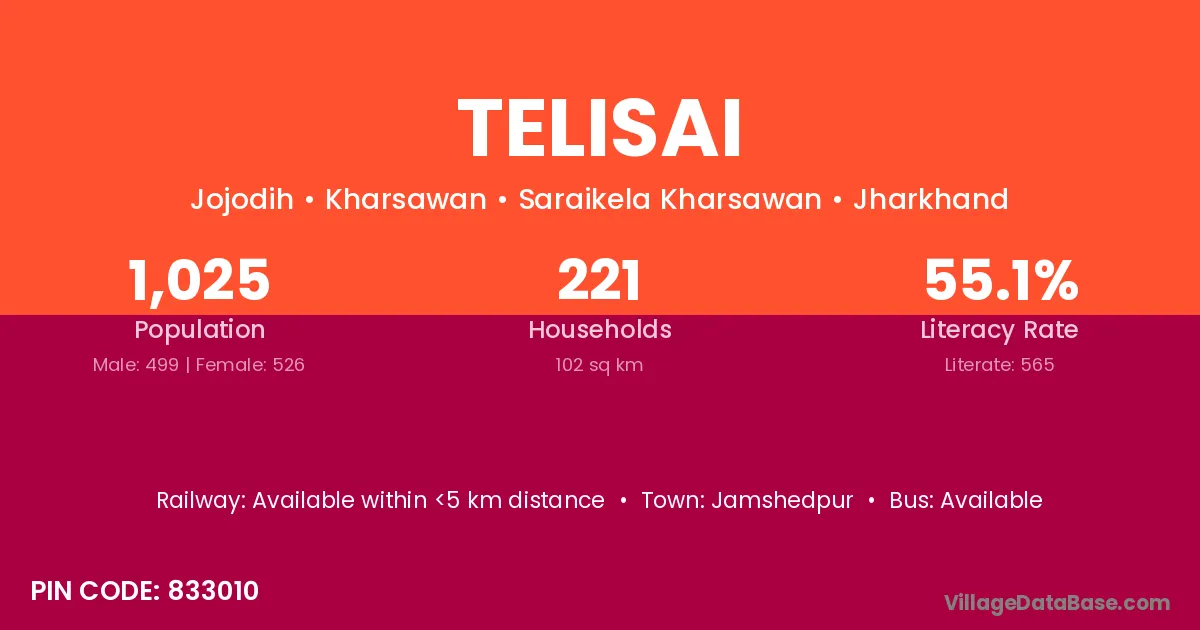 Jamshedpur is the nearest town to Telisai village for major economic activities