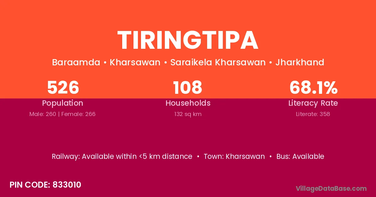 Kharsawan is the nearest town to Tiringtipa village for major economic activities