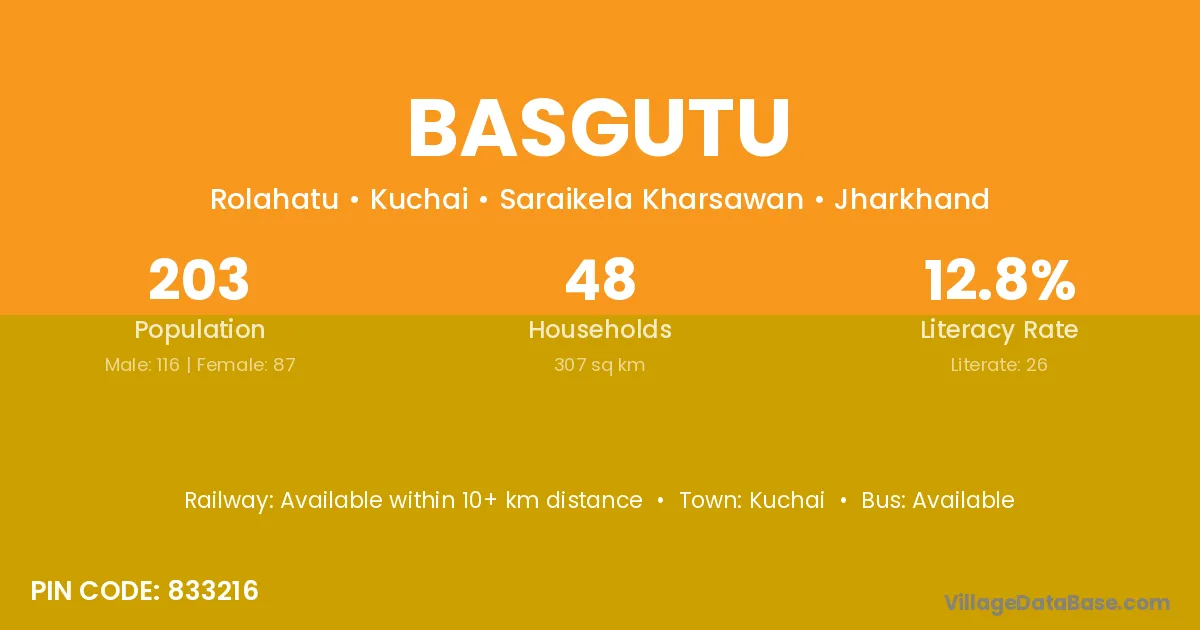 Basgutu village has a total population of 203 people, of which 116 are males and 87 are females.