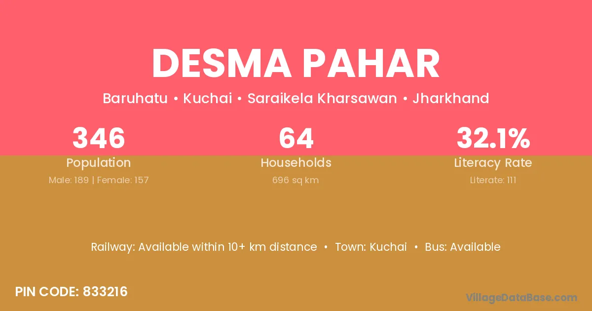 Desma Pahar village has a total population of 346 people, of which 189 are males and 157 are females.
