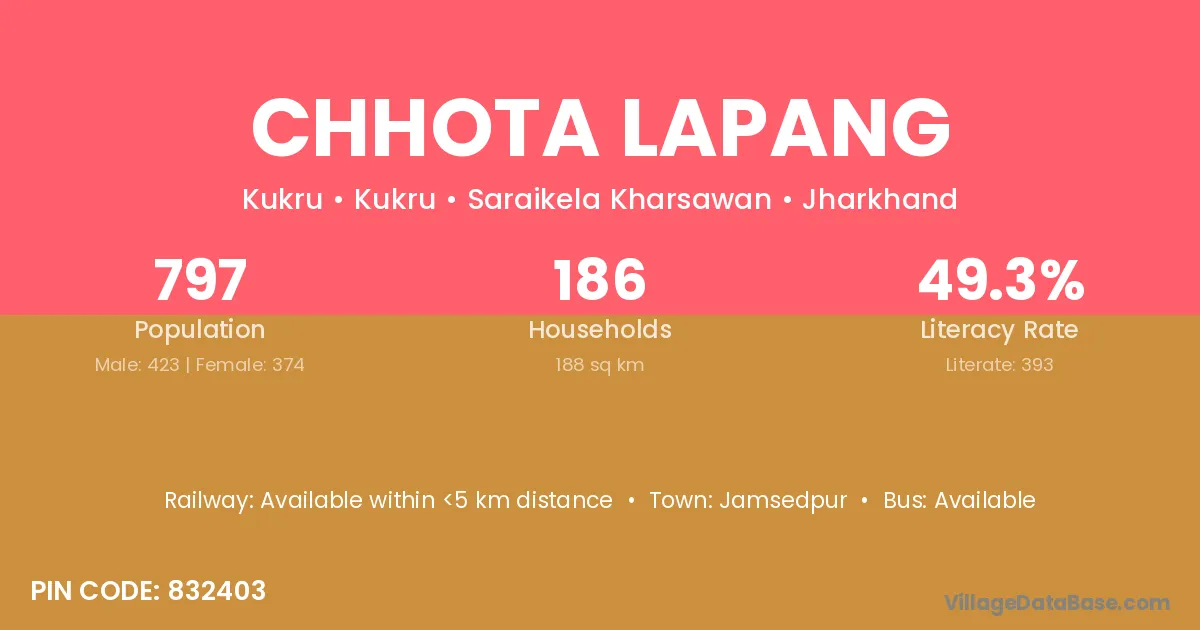 Jamsedpur is the nearest town to Chhota Lapang village for major economic activities