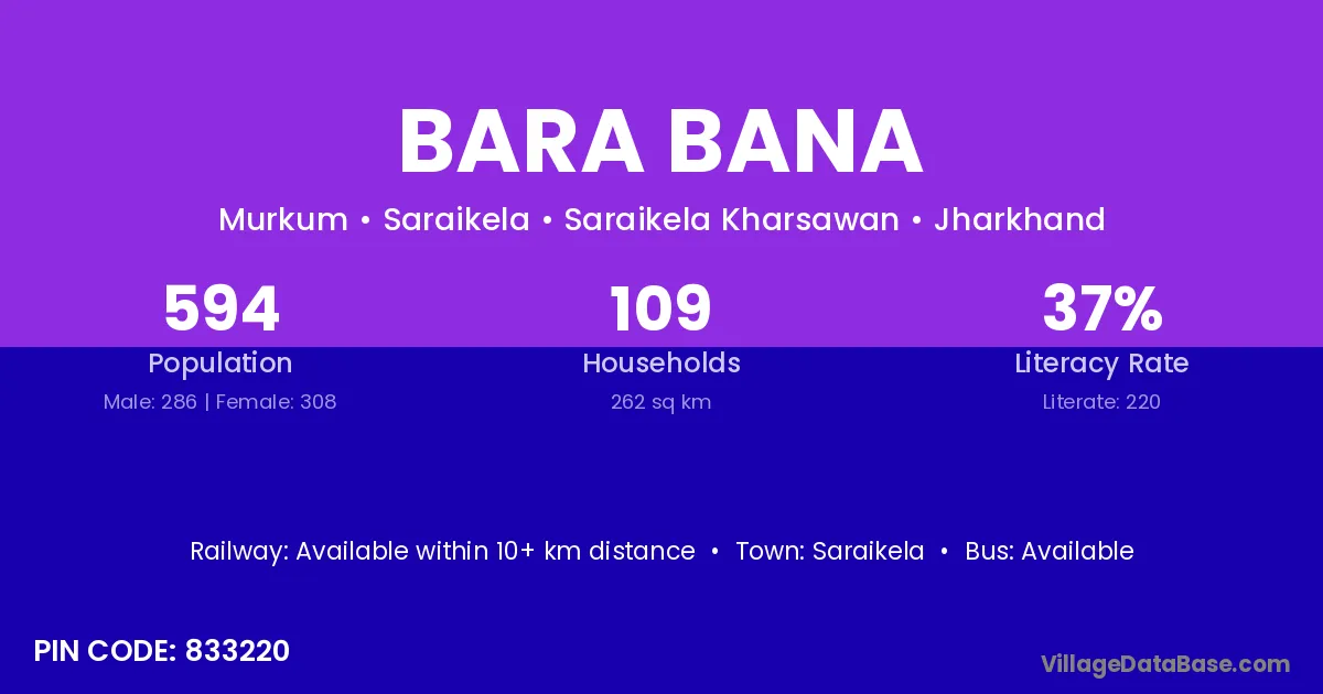 According to Census 2011 information, the village code of Bara Bana village is 833220.
