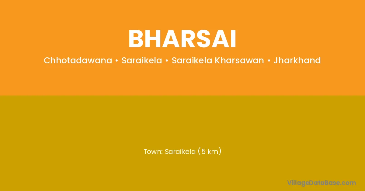 Saraikela (5 km) is the nearest town to Bharsai village for major economic activities and is located approximately 5 km away.