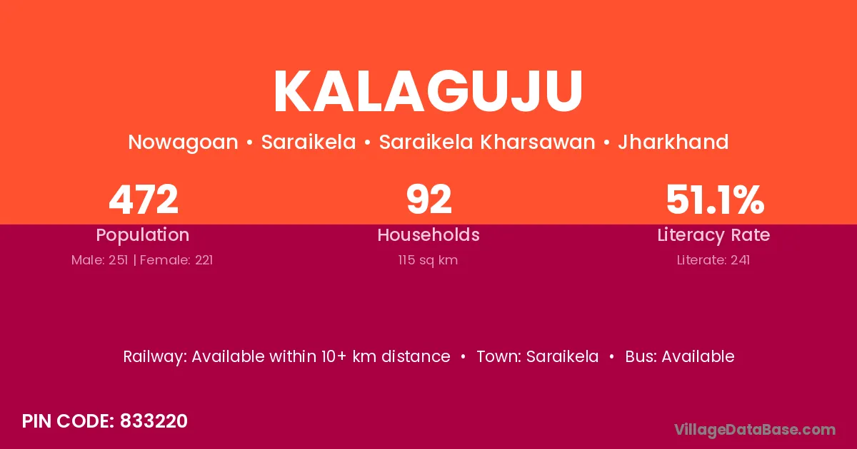 Saraikela is the nearest town to Kalaguju village for major economic activities