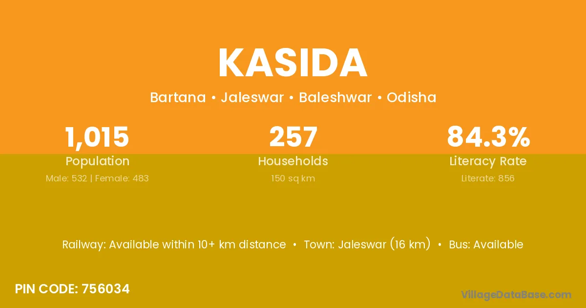 According to Census 2011 information, the village code of Kasida village is 833220.