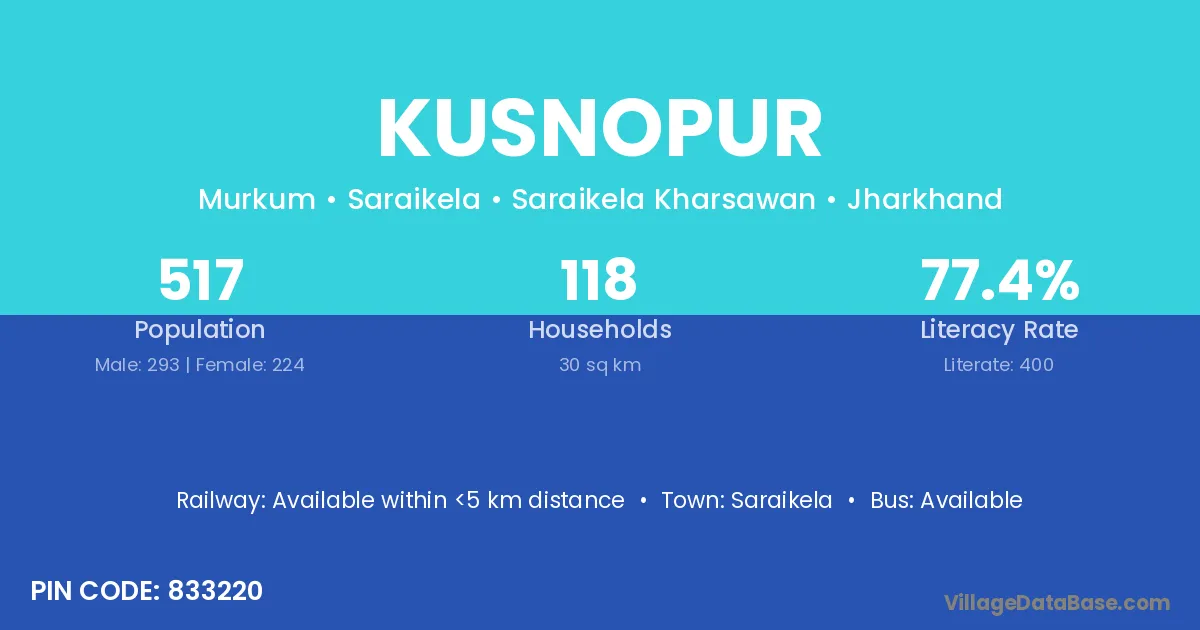 Saraikela is the nearest town to Kusnopur village for major economic activities