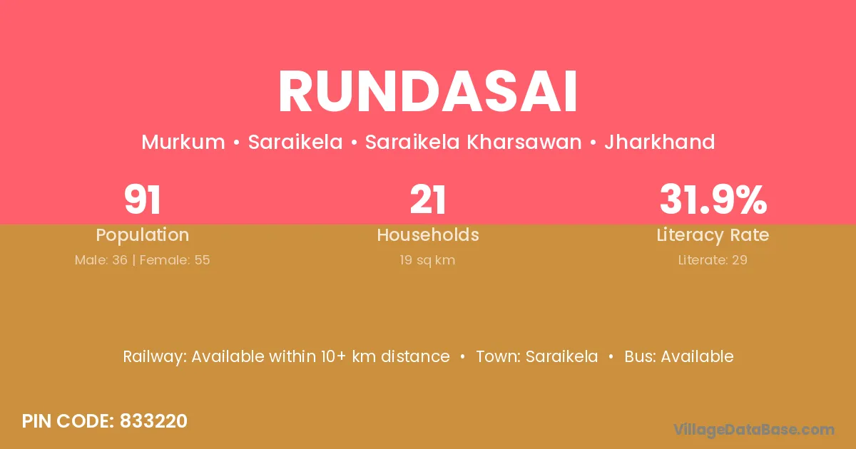 Saraikela is the nearest town to Rundasai village for major economic activities