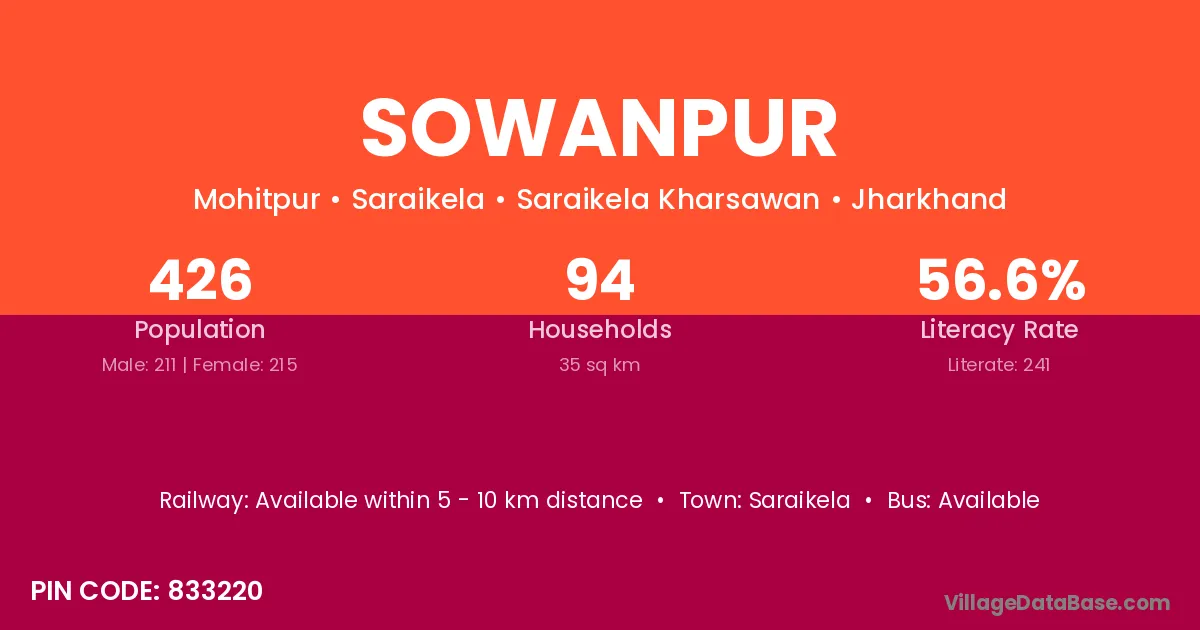 Saraikela is the nearest town to Sowanpur village for major economic activities