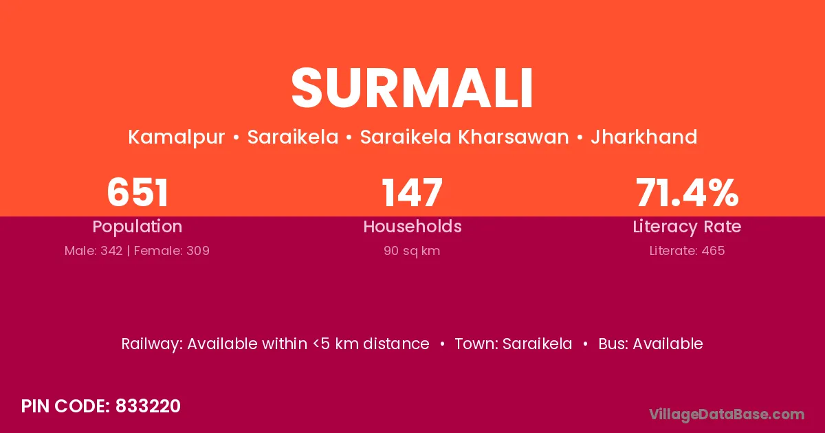 According to Census 2011 information, the village code of Surmali village is 833220.
