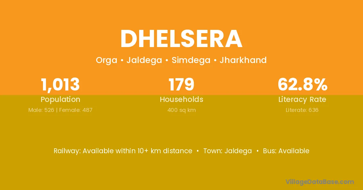 Dhelsera village has a total population of 1,013 people, of which 526 are males and 487 are females.