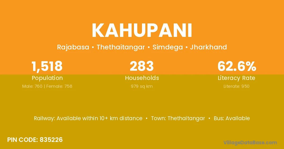 Kahupani village is located in the Thethaitangar Subdivision of the Simdega district in Jharkhand .