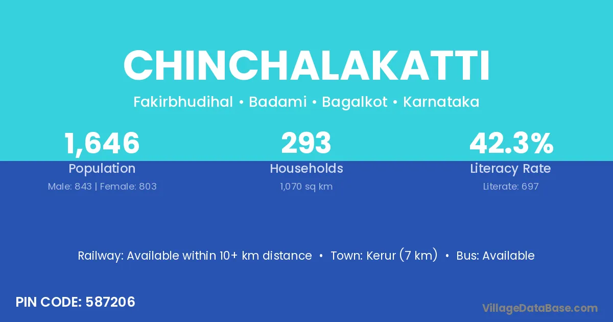 Kerur (7 km) is the nearest town to Chinchalakatti village for major economic activities and is located approximately 7 km away.