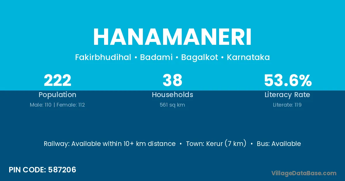 Kerur (7 km) is the nearest town to Hanamaneri village for major economic activities and is located approximately 7 km away.