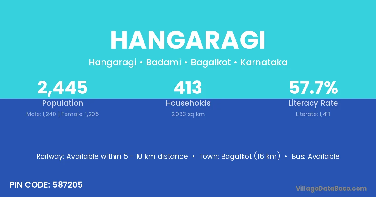 Hangaragi village has a total population of 2,445 people, of which 1,240 are males and 1,205 are females.