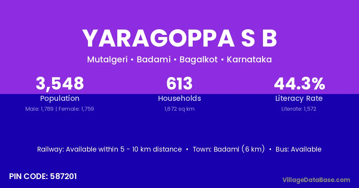 Badami (6 km) is the nearest town to Yaragoppa S B village for major economic activities and is located approximately 6 km away.