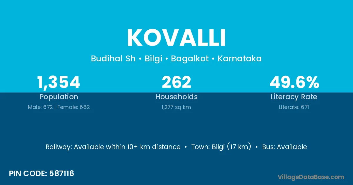 Bilgi (17 km) is the nearest town to Kovalli village for major economic activities and is located approximately 17 km away.