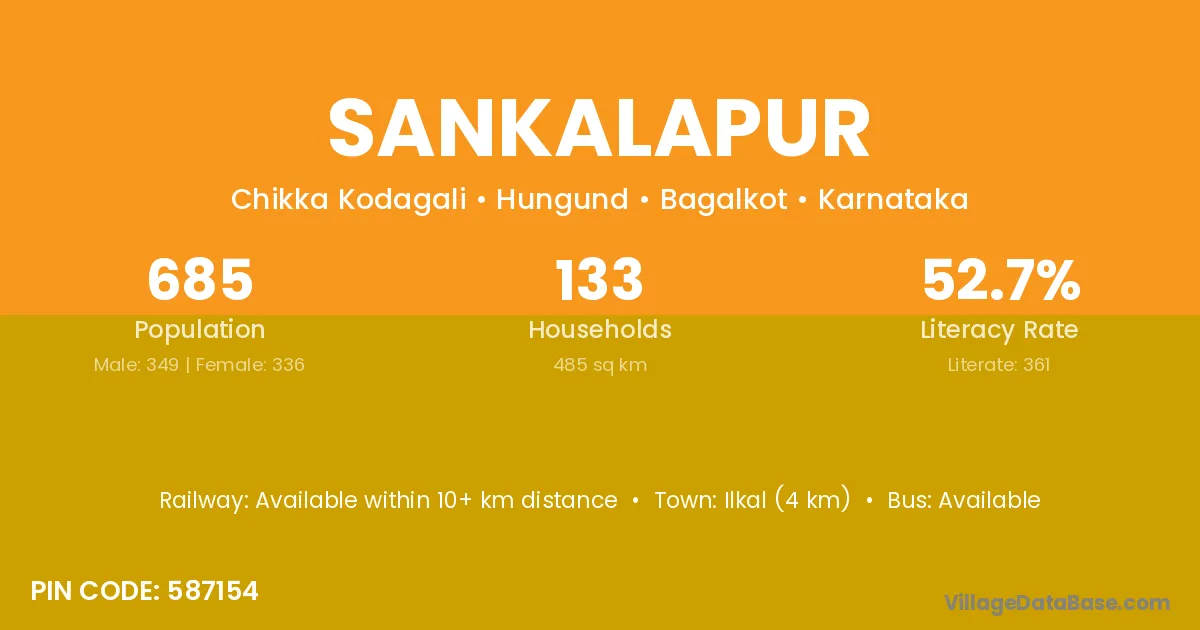 Ilkal (4 km) is the nearest town to Sankalapur village for major economic activities and is located approximately 4 km away.