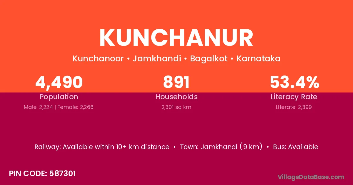 Jamkhandi (9 km) is the nearest town to Kunchanur village for major economic activities and is located approximately 9 km away.