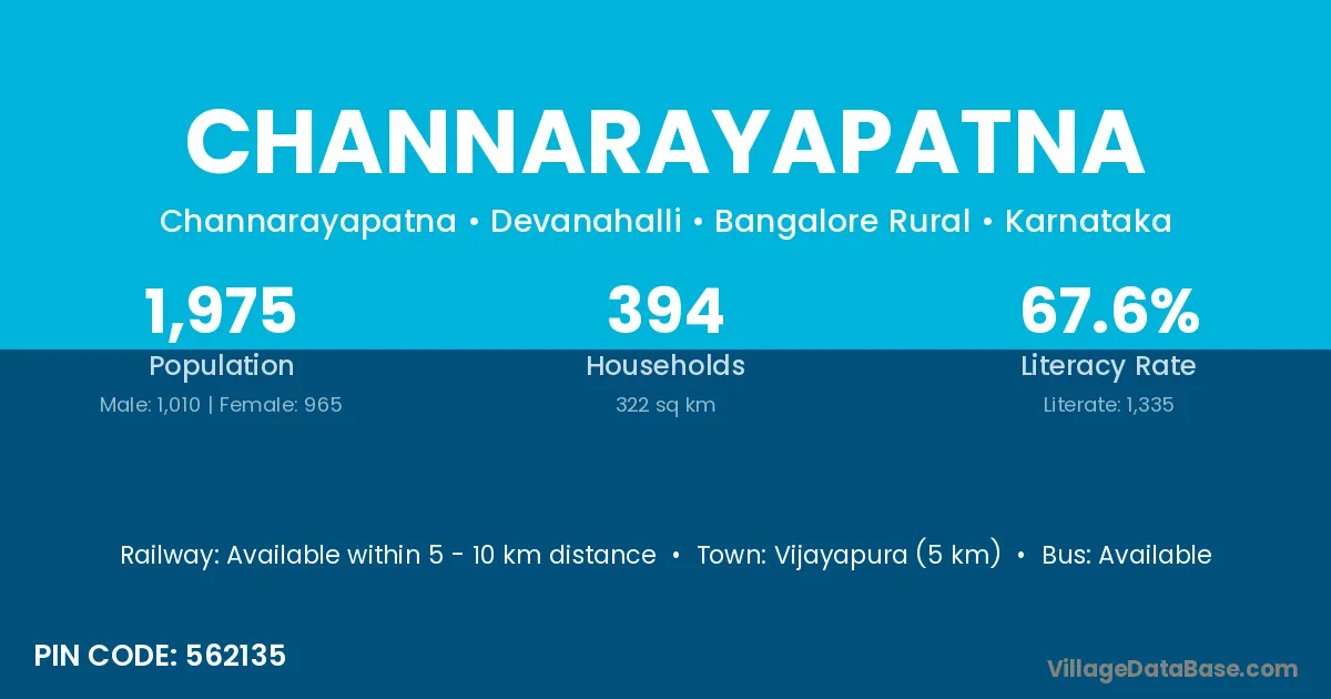 Vijayapura (5 km) is the nearest town to Channarayapatna village for major economic activities and is located approximately 5 km away.