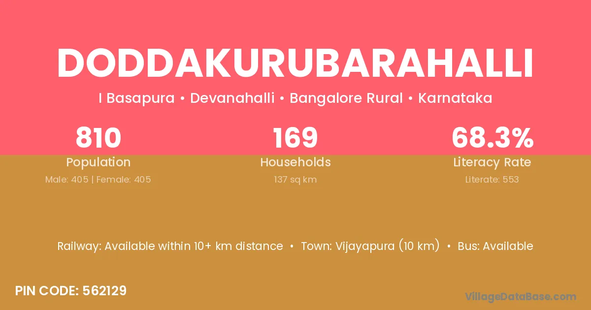 Doddakurubarahalli village has a total population of 810 people, of which 405 are males and 405 are females.