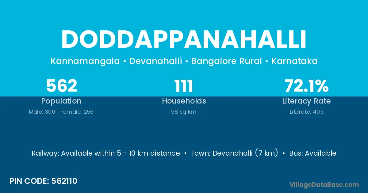 Devanahalli (7 km) is the nearest town to Doddappanahalli village for major economic activities and is located approximately 7 km away.
