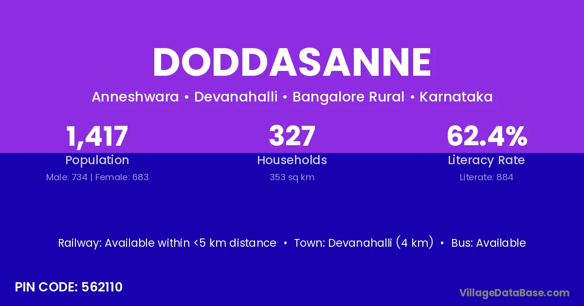 Doddasanne village has a total population of 1,417 people, of which 734 are males and 683 are females.