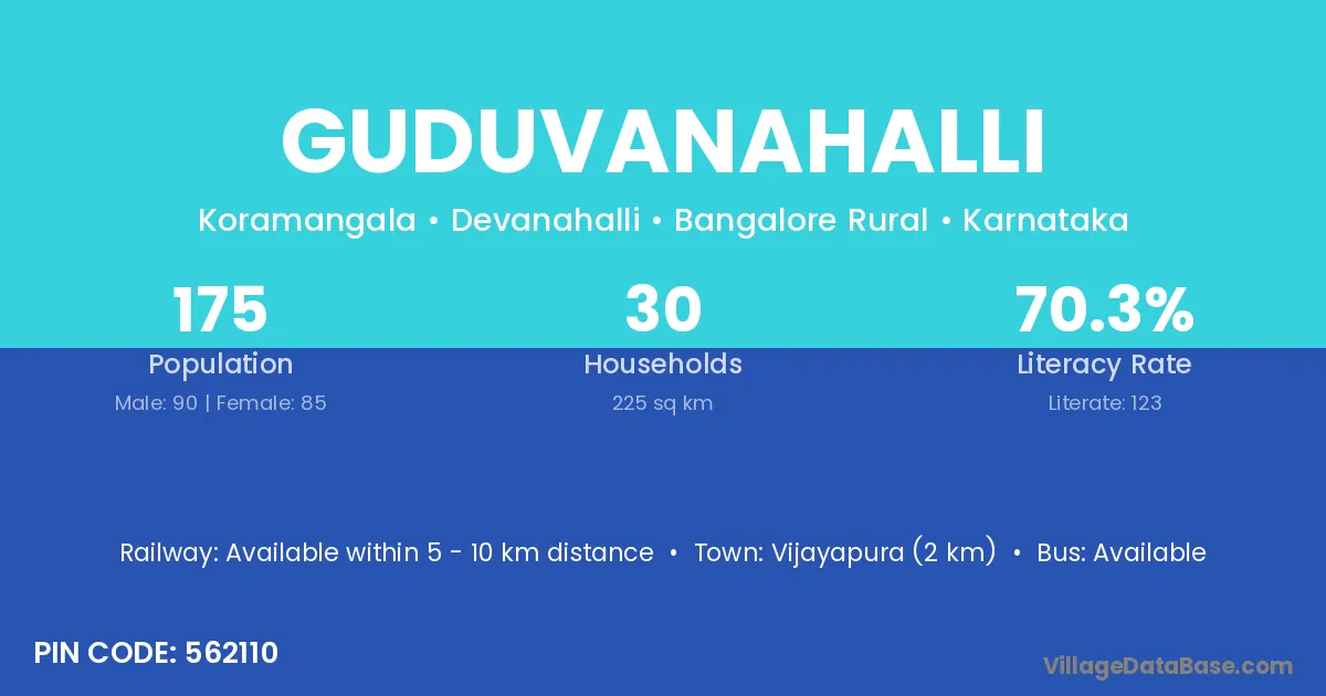 Vijayapura (2 km) is the nearest town to Guduvanahalli village for major economic activities and is located approximately 2 km away.