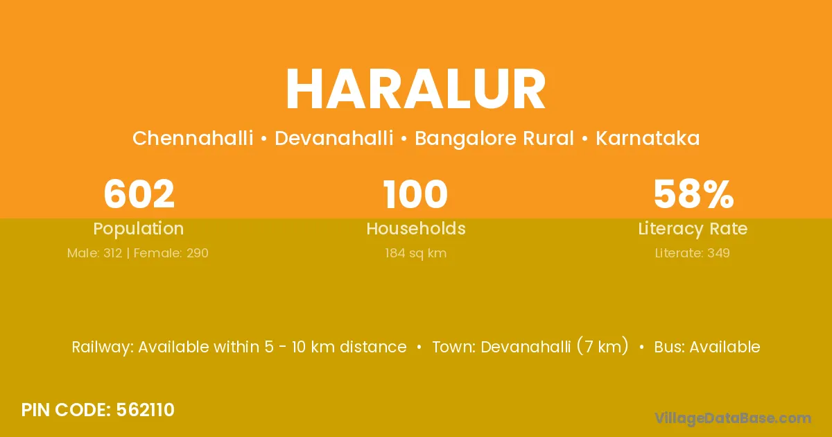 Devanahalli (7 km) is the nearest town to Haralur village for major economic activities and is located approximately 7 km away.