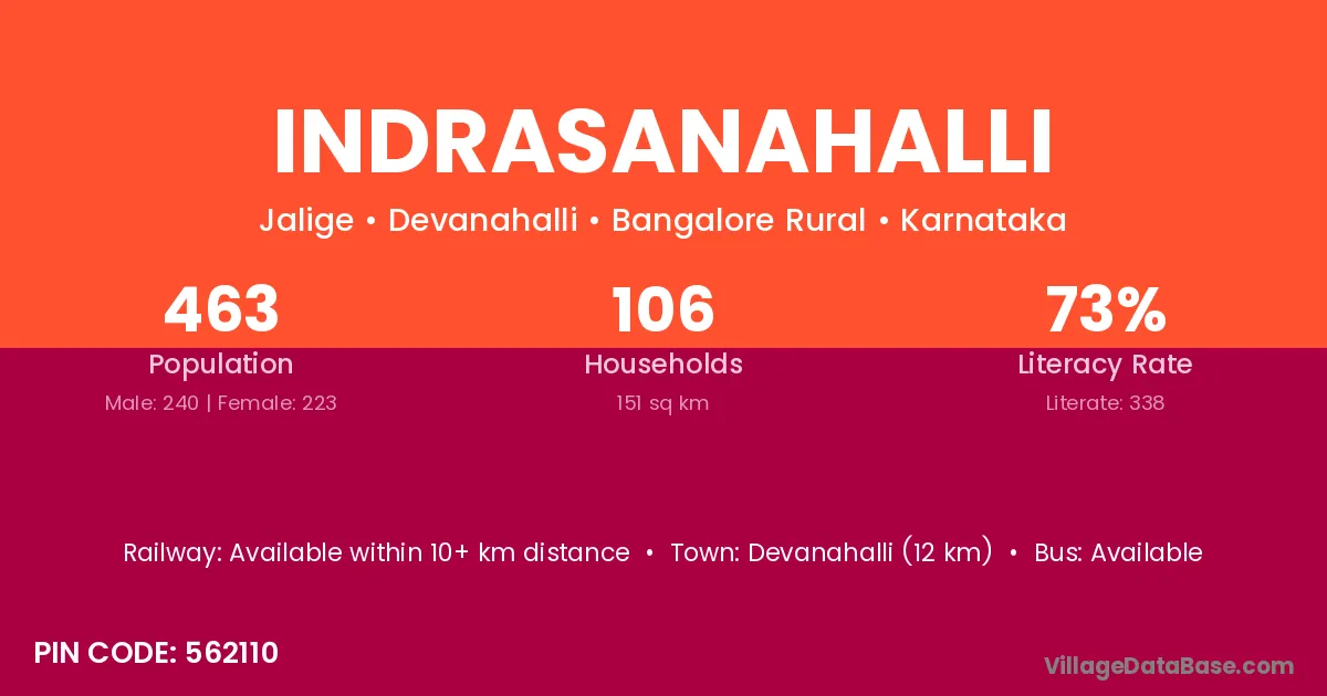 Indrasanahalli village has a total population of 463 people, of which 240 are males and 223 are females.