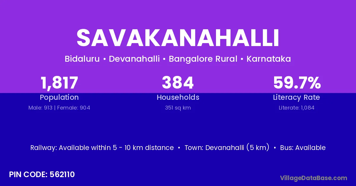 Devanahalli (5 km) is the nearest town to Savakanahalli village for major economic activities and is located approximately 5 km away.