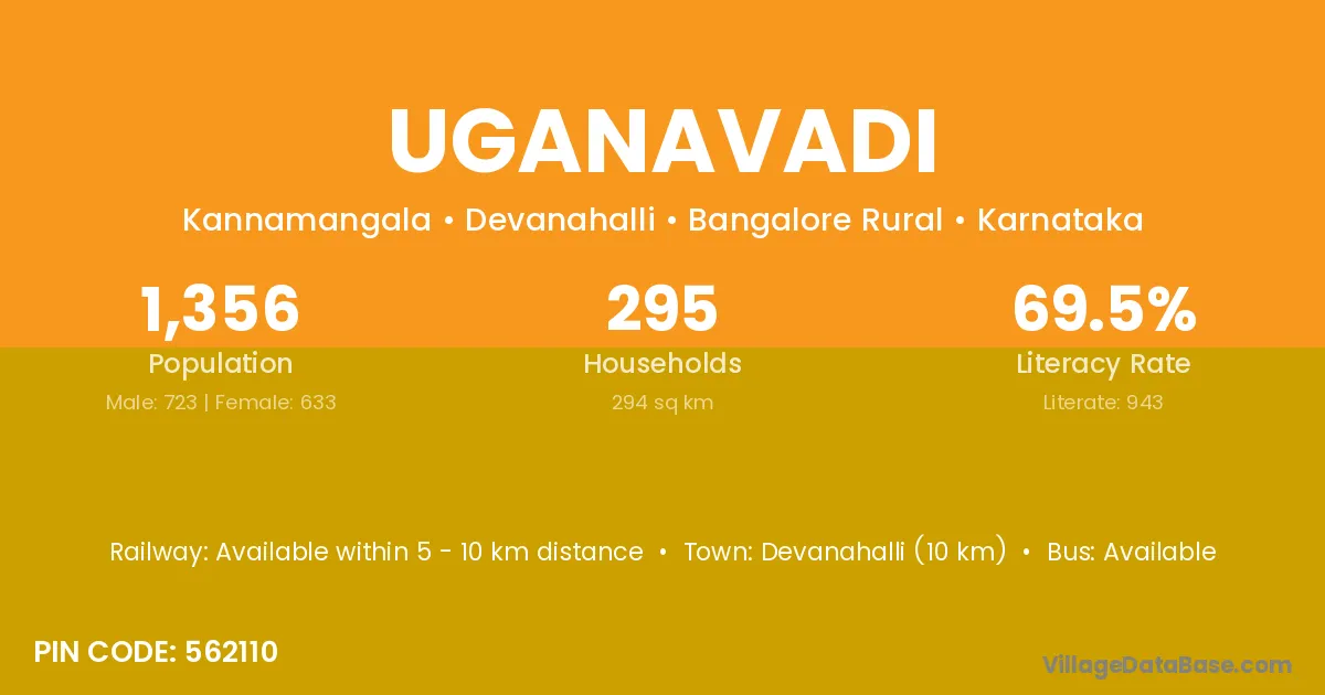 Devanahalli (10 km) is the nearest town to Uganavadi village for major economic activities and is located approximately 10 km away.
