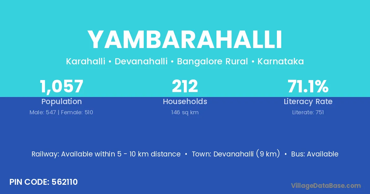 Yambarahalli village has a total population of 1,057 people, of which 547 are males and 510 are females.