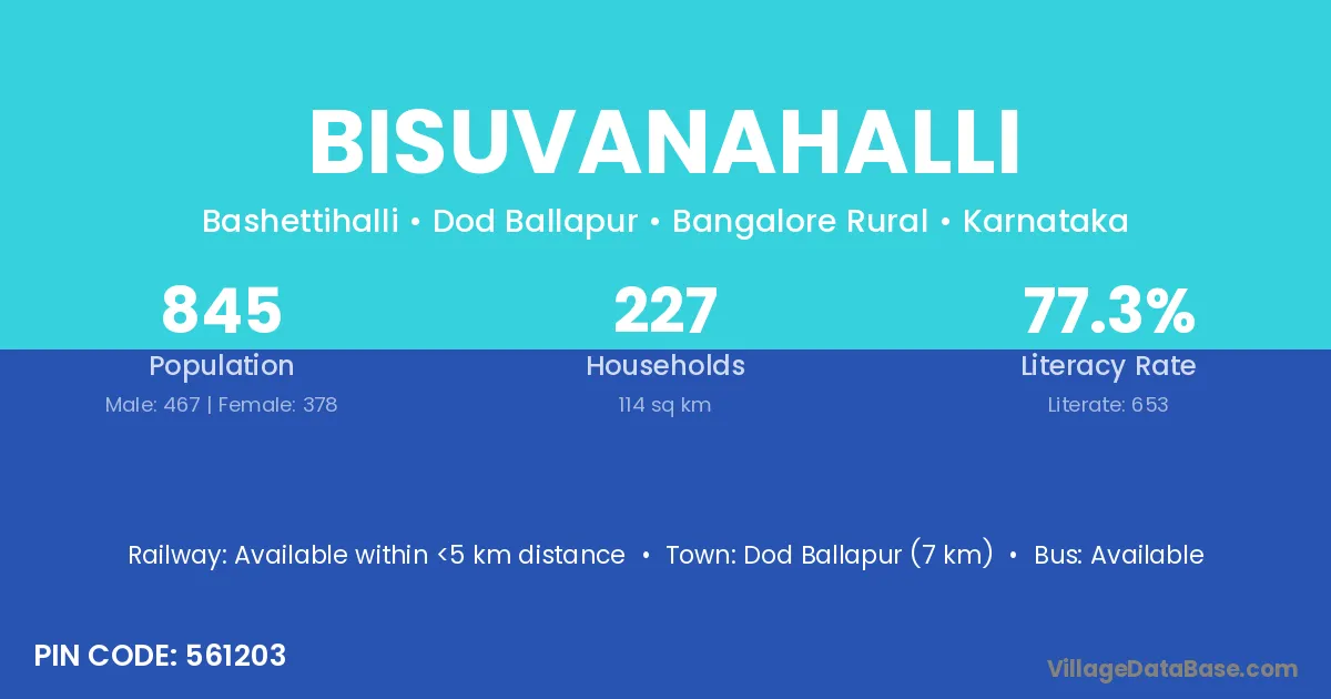 Dod Ballapur (7 km) is the nearest town to Bisuvanahalli village for major economic activities and is located approximately 7 km away.