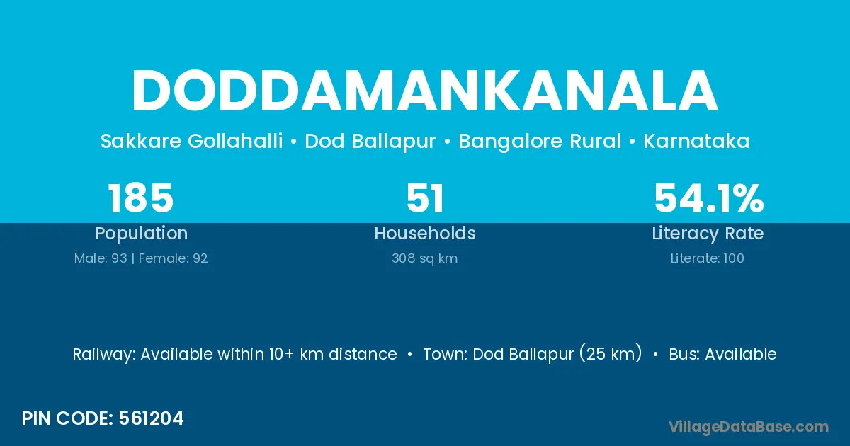 Dod Ballapur (25 km) is the nearest town to Doddamankanala village for major economic activities and is located approximately 25 km away.