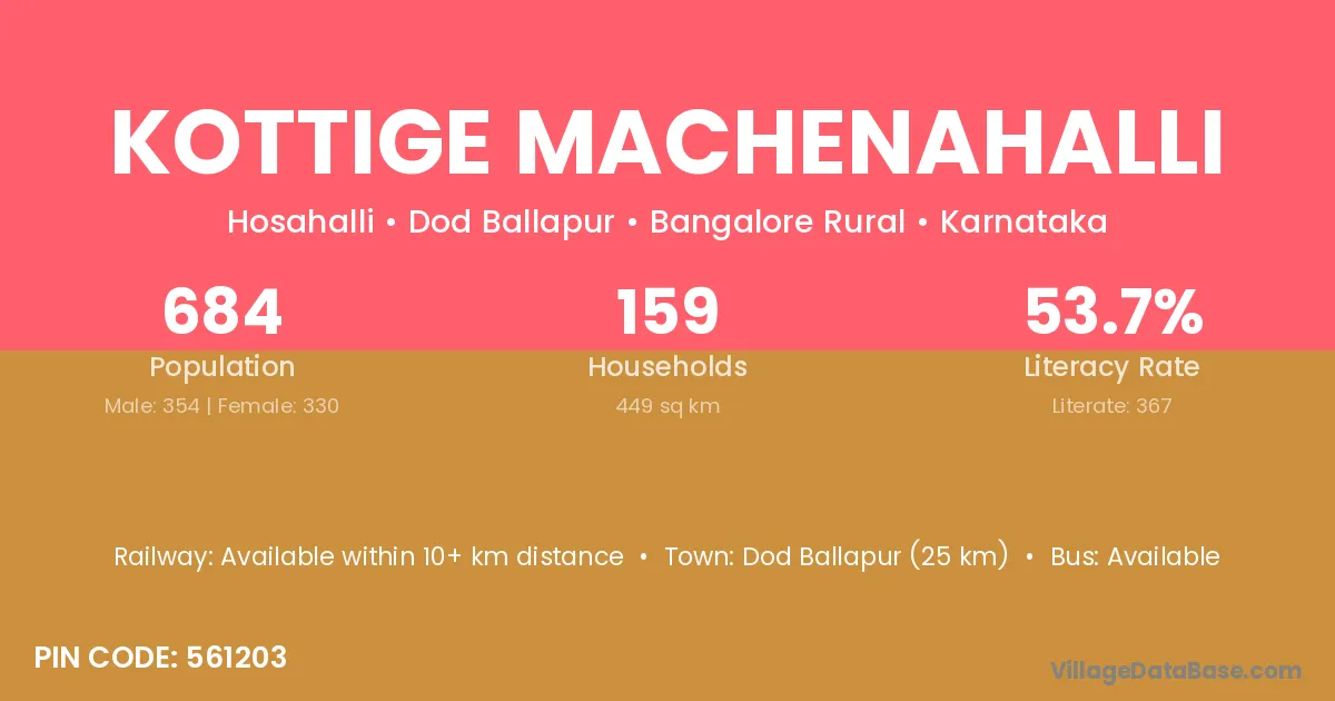 Dod Ballapur (25 km) is the nearest town to Kottige Machenahalli village for major economic activities and is located approximately 25 km away.