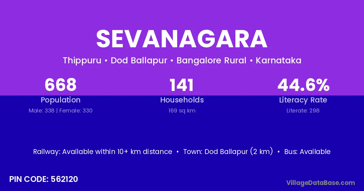 Dod Ballapur (2 km) is the nearest town to Sevanagara village for major economic activities and is located approximately 2 km away.