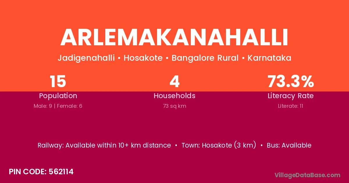 Hosakote (3 km) is the nearest town to Arlemakanahalli village for major economic activities and is located approximately 3 km away.