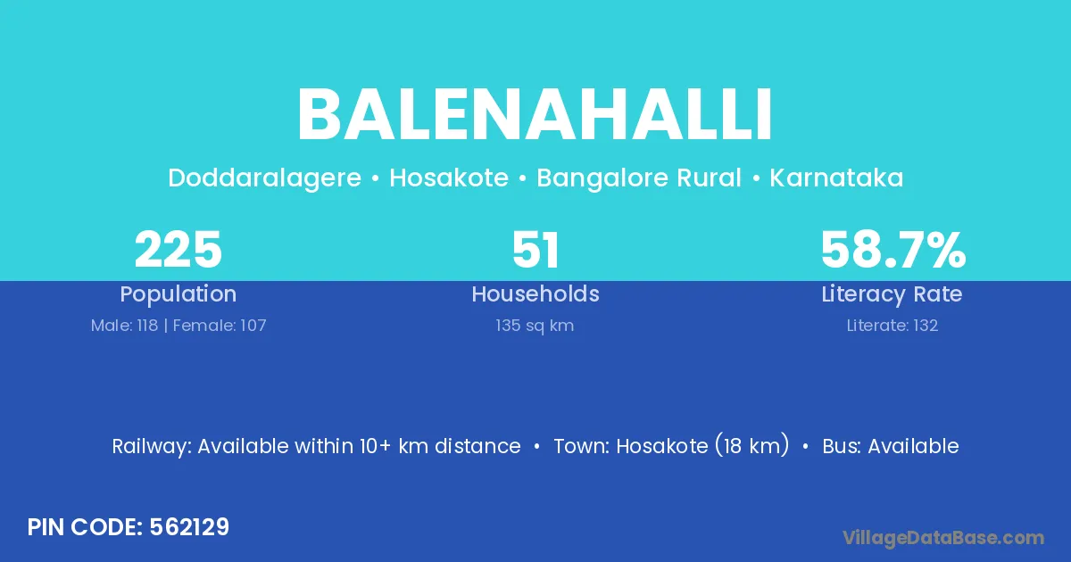 Hosakote (18 km) is the nearest town to Balenahalli village for major economic activities and is located approximately 18 km away.