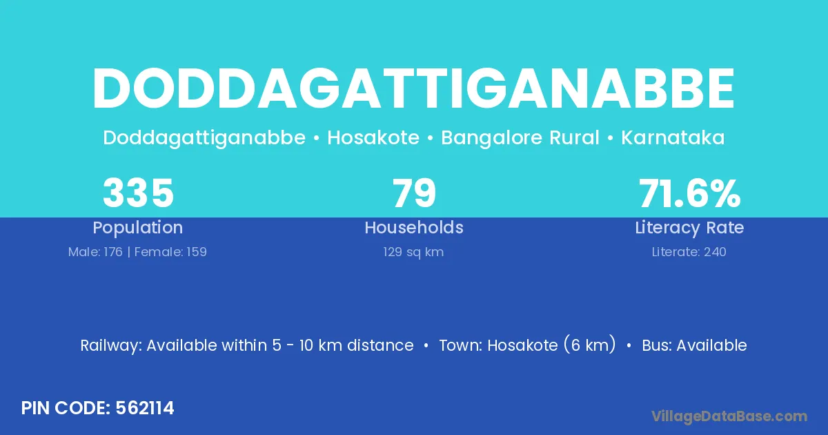 Hosakote (6 km) is the nearest town to Doddagattiganabbe village for major economic activities and is located approximately 6 km away.