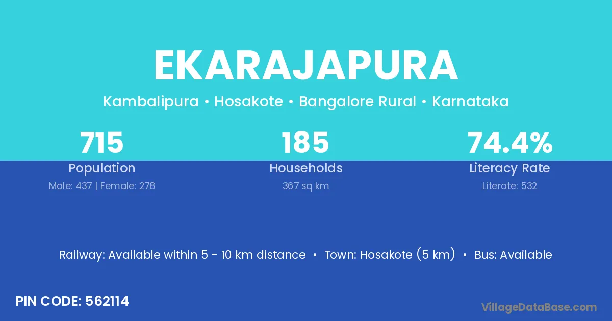 Hosakote (5 km) is the nearest town to Ekarajapura village for major economic activities and is located approximately 5 km away.