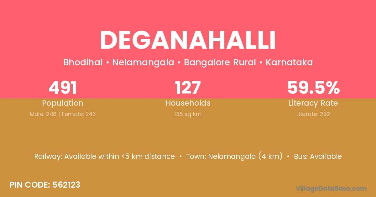 Deganahalli village has a total population of 491 people, of which 248 are males and 243 are females.