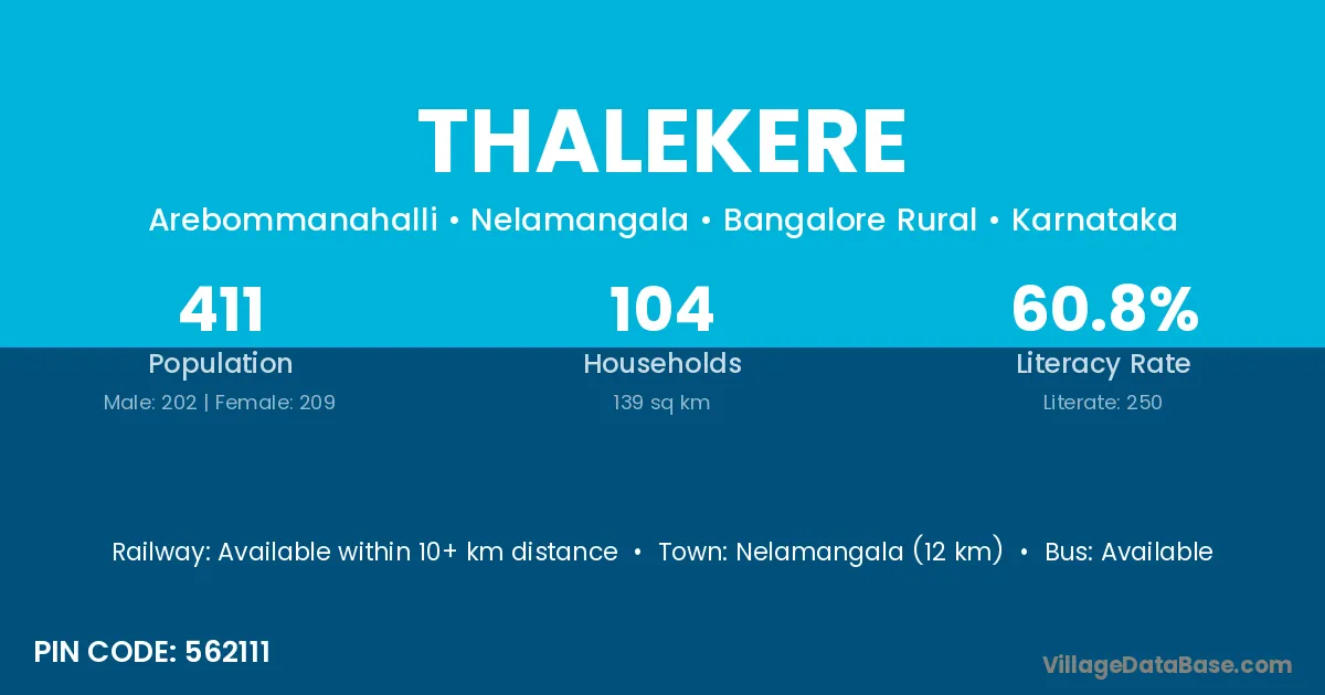 Thalekere village has a total population of 411 people, of which 202 are males and 209 are females.