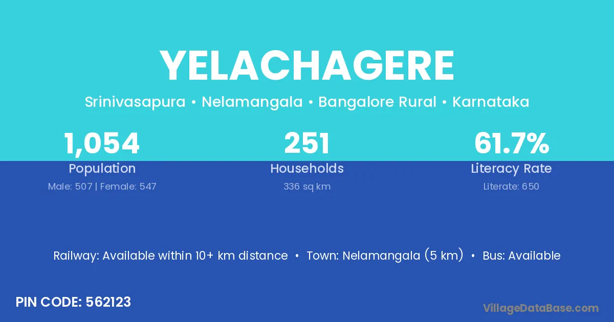 Nelamangala (5 km) is the nearest town to Yelachagere village for major economic activities and is located approximately 5 km away.