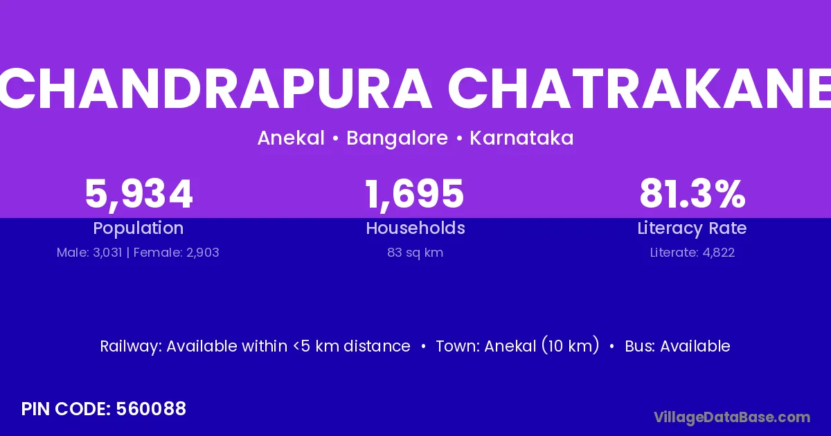 Anekal (10 km) is the nearest town to Chandrapura Chatrakane village for major economic activities and is located approximately 10 km away.