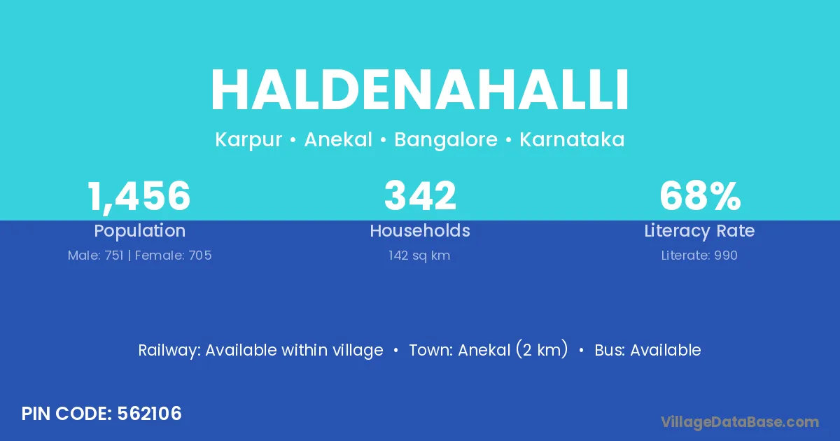 Anekal (2 km) is the nearest town to Haldenahalli village for major economic activities and is located approximately 2 km away.