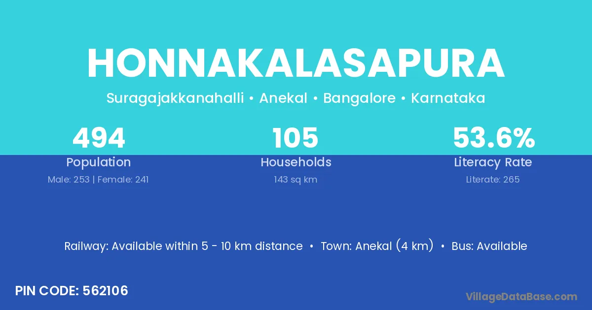 Anekal (4 km) is the nearest town to Honnakalasapura village for major economic activities and is located approximately 4 km away.